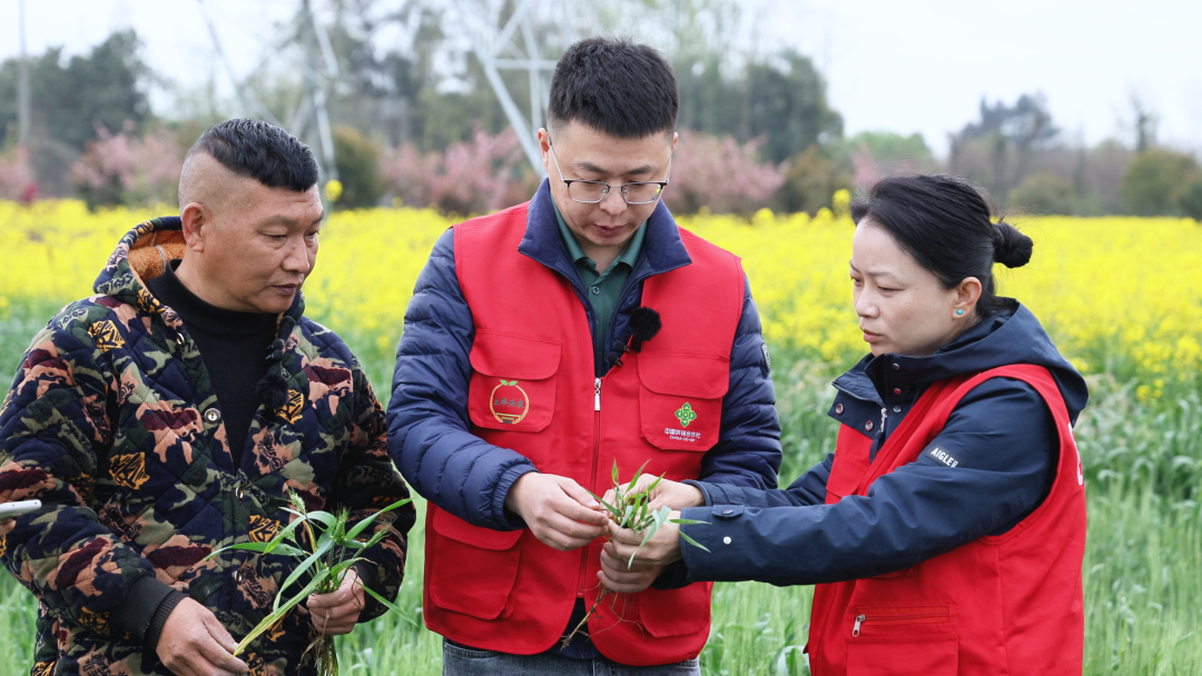 3月的川西平原,春风拂过绿意盎然的麦田。在四川省成都市新都区新民镇,种植大户蔡勇蹲在田埂边,眉头紧锁:“往年这时候,麦苗早该齐刷刷拔节了,可今年,高的高、矮的矮,长势参差不齐。”不远处,中农立华的技术服务人员郭建成正俯身查看叶片,衣衫上沾着新鲜的泥土。他直起身,望向这片2000多亩的麦田,“病害已经出现,今年这场春管,是和天时较劲,更是和时间赛跑。”