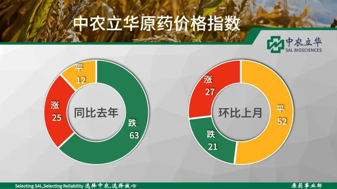 经历十一月份基础原材料大涨的影响,部分产品原材料成本提升;与此同时,进入生产旺季,部分下跌品种,库存消化后,由于终端采购时间过于集中,出现供应紧张,市场价格反弹;业内观望情绪减弱,成交量稳步提升。草甘膦、烟碱类、三唑类等产品价格上行,导致各品类上涨轮动效应增强,产业链各环节需关注各品种库存、开工率以及汇率波动带来出口市场行情影响。
